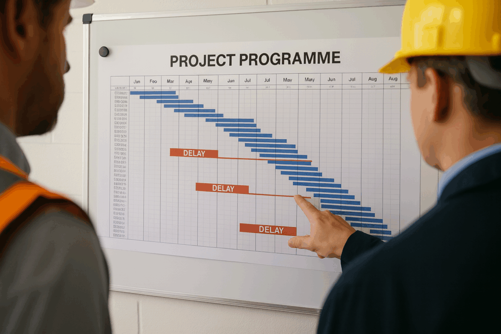 Most projects don’t miss deadlines because of one dramatic event. They slip through dozens of small overruns – late approvals, slow mobilisation, uncoordinated interfaces. Each adds days, then weeks, until the programme is no longer realistic.